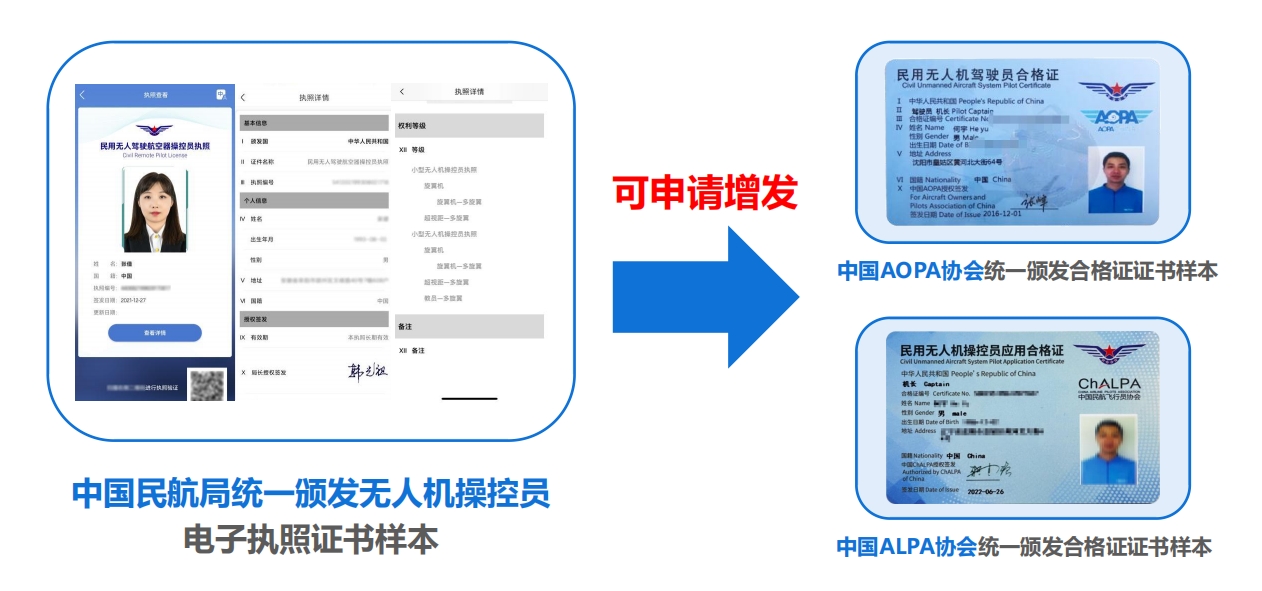 多旋翼无人机执照:适用于操作多旋翼无人机的人员,广泛应用于航拍、测绘、物流等领域。