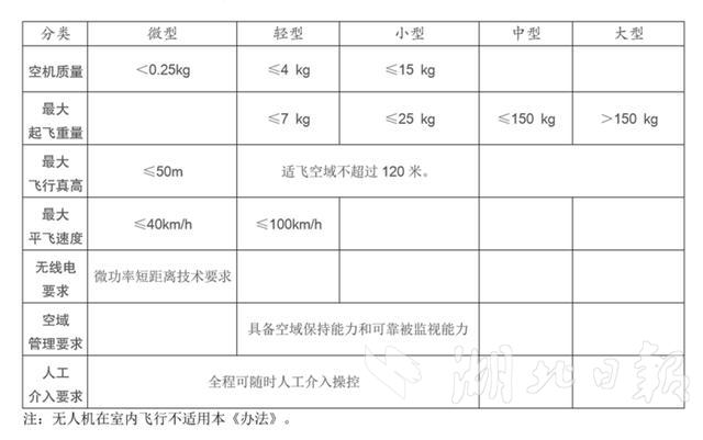《办法》将民用无人驾驶航空器(俗称“无人机”)按照性能分为微型、轻型、小型、中型和大型5个类别。在日常使用中,首先要确认自己无人机所属的类别。因为不同的类别,对应的飞行空域、驾驶执照资质、强制保险投保、飞手民事行为能力等管理要求各有不同。